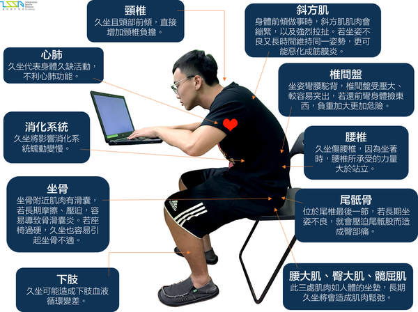 而當臀肌失去原有功能後,其原本幫助臀肌一起完成動作的協同肌 (腿後肌),則需要用 2 倍、甚至 3 倍的力氣,去幫助臀肌進行代償,長久下來就會造成腿後肌緊繃,進而導致腿後肌拉傷、梨狀肌症候群、骨盆位置的偏移、甚至影響到肩膀。